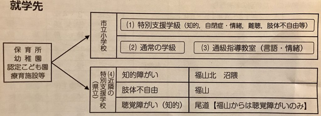 福山市教育委員会も各施設を中心に毎年、教育委員会から担当者出向いて個別説明会の実施しているのですが、回数が少なく参加しにくかったり、対象の児童を教育委員会が把握しきれていない場合もあるため、一定数以上の特別支援教育を必要とする保護者グループに出向いて説明会を年に1度でいいので実施してほしいという要望が背景にありました。