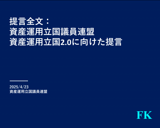 先日、事務局長を務めている資産運用立国議員連盟で「資産運用立国2.0に向けた提言」をまとめ、石破総理に申し入れを行いました。 提言本文はこちらに全文を掲載しています。また、私のYouTubeで提言の内容についても解説して […]