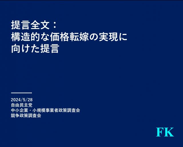 構造的な価格転嫁の実現に向けた提言 令和6年5月28日自由民主党 政務調査会中小企業・小規模事業者政策調査会競争政策調査会 1.現状認識:構造的な賃上げの実現に向けた構造的な価格転嫁の環境整備の必要性 日本経済の最重要課 […]